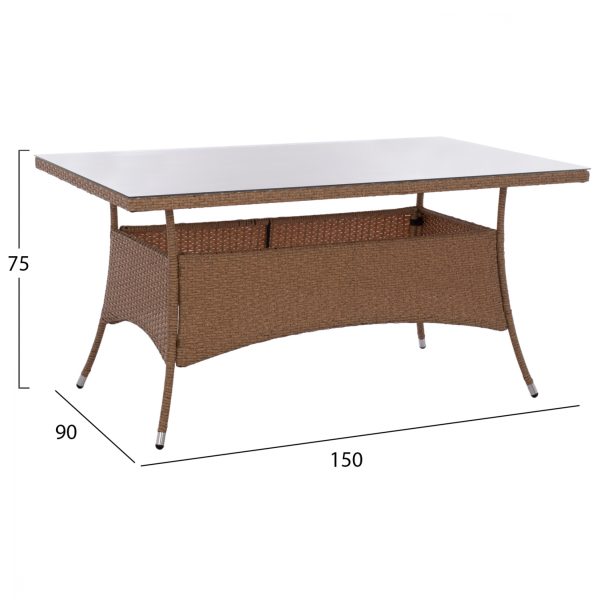 ΣΕΤ ΤΡΑΠΕΖΑΡΙΑΣ 7ΤΜΧ ΤΡΑΠ. 150Χ90 & 6 ΠΟΛΥΘΡΟΝΕΣ WICKER RATTAN ΜΠΕΖ ΚΑΦΕ HM11715.02