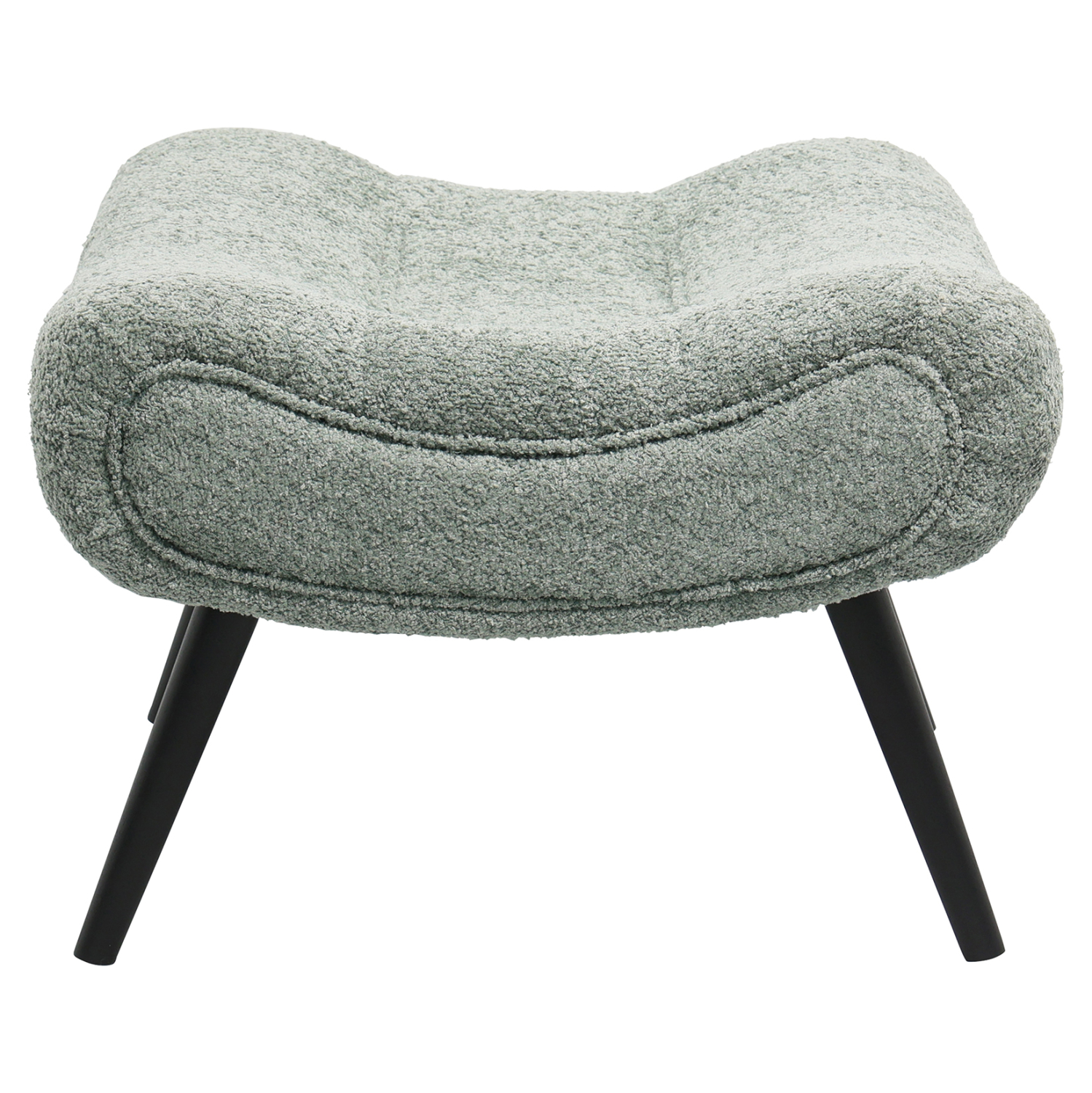 Σκαμπό υποπόδιο KEMBA επενδυμένο με ΦΥΣΤΙΚΙ μπουκλέ ζεστό ύφασμα και μαύρα ξύλινα πόδια.
