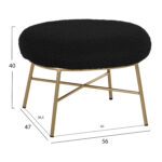 Το σκαμπό/υποπόδιο TRUDI είναι μια μοντέρνα και στιλάτη πρόταση που θα αφήσει το στίγμα του σε όποιο σαλόνι κι αν τοποθετηθεί. Το οβάλ του σχήμα με την ΧΡΥΣΗ μεταλλική βάση με τα πόδια που συνδέονται με χιαστί διάταξη, σε συνδυασμό με το ζεστό μπουκλέ ύφασμα σε ΜΑΥΡΟ χρώμα, συνθέτουν ένα όμορφο και πρακτικό έπιπλο, που μπορεί να συνδυαστεί ποικιλοτρόπως στην διακόσμηση του σαλονιού, αλλά κυρίως με μια όμορφη και ίδιας αισθητικής πολυθρόνα ως υποπόδιο.