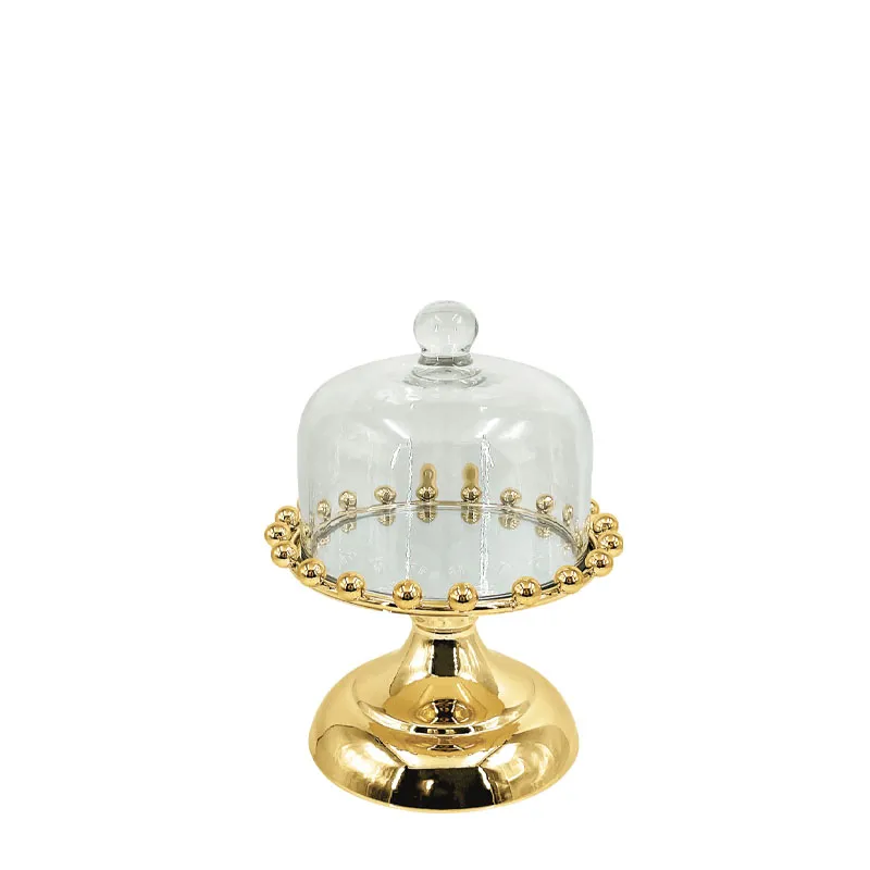 ΤΟΥΡΤΙΕΡΑ ΜΕΤΑΛΛΙΚΗ ΧΡΥΣΟ/ΛΕΥΚΟ ΜΕ ΓΥΑΛΙ ΜΠΙΛΙΕΣ ΚΟΝΤΟ – Φ15x18cm 24/ΚΙΒ