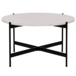 Το τραπεζάκι ΗΜ9588.05 θα σας ενθουσιάσει με το στυλ και την πρακτικότητά του. Πρόκειται για ένα στρογγυλό τραπεζάκι με ιδιαίτερο χαρακτηριστικό ότι η επιφάνεια στηρίζεται σε μια βάση με χιαστί διάταξη. Η βάση είναι μεταλλική σε ΜΑΥΡΟ χρώμα, ενώ η επιφάνεια είναι κατασκευασμένη από MDF σε χρώμα ΛΕΥΚΟΥ ΜΑΡΜΑΡΟΥ.