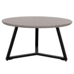 Το τραπεζάκι σαλονιού ΗΜ9586.02 είναι η καινούργια προσθήκη στην γκάμα μας και θα σας ενθουσιάσει με το στυλ και την πρακτικότητά του. Πρόκειται για ένα στρογγυλό τραπεζάκι με ιδιαίτερο χαρακτηριστικό ότι η επιφάνεια στηρίζεται σε μια μοντέρνα τρίποδη βάση. Η βάση είναι μεταλλική σε ΜΑΥΡΟ σαγρέ χρώμα, ενώ η φαλτσοκομμένη επιφάνεια είναι κατασκευασμένη από MDF σε χρώμα ΓΚΡΙ ΜΑΡΜΑΡΟΥ.