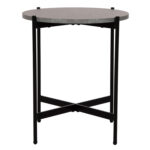 Το βοηθητικό τραπεζάκι ΗΜ9589.02 θα σας ενθουσιάσει με το στυλ και την πρακτικότητά του. Πρόκειται για ένα στρογγυλό ψηλό σχετικά τραπεζάκι με ιδιαίτερο χαρακτηριστικό ότι η επιφάνεια στηρίζεται σε μια βάση με χιαστί διάταξη. Η βάση είναι μεταλλική σε ΜΑΥΡΟ χρώμα, ενώ η επιφάνεια είναι κατασκευασμένη από MDF σε χρώμα ΓΚΡΙ ΜΑΡΜΑΡΟΥ.